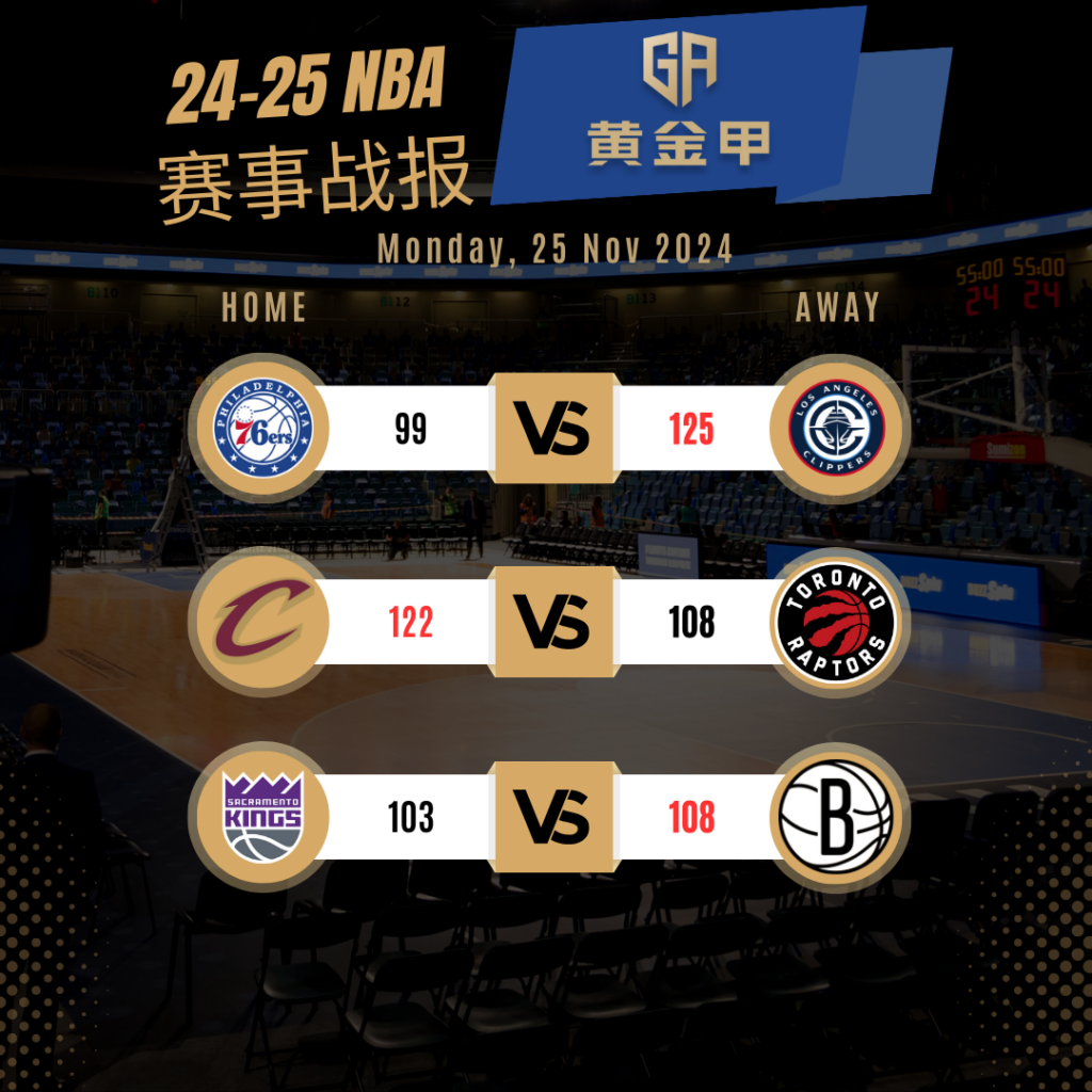 接下来要看到篮网客场以108-103战胜国王,让在场边观战的国王老板看的非常不开心。其他比赛为快船在客场以125-99战胜76人,让后者继续在联盟中排名倒数第二,骑士以122-108战胜暴龙,打出新一波连胜。