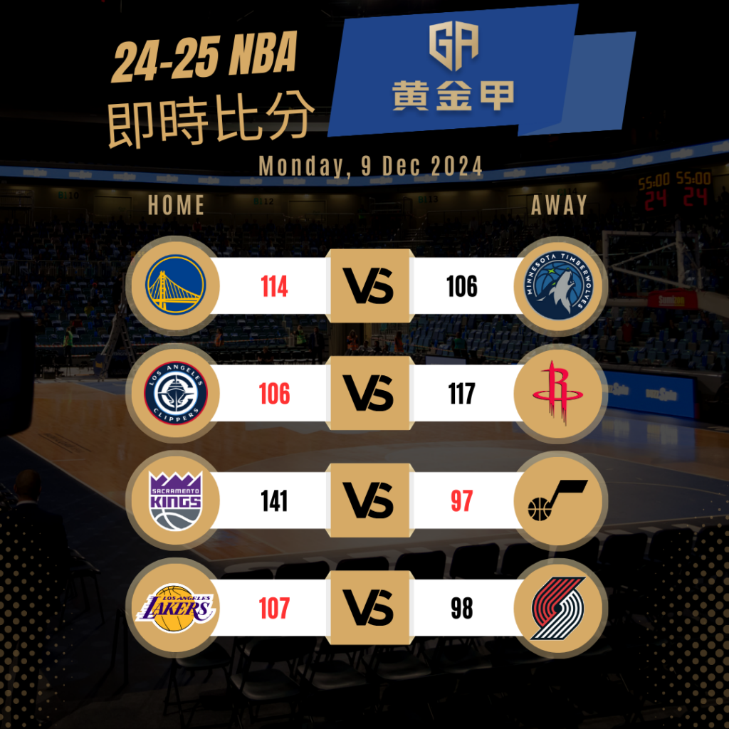 最后要談勇士在主场对阵森林狼赛事,上一场不敌森林狼的勇士在库里回归下,下半场演出大逆转,连格林都能一条龙灌篮说晚安,最后以114-106胜。其他赛事为火箭以117-106战胜快船,国王以141-97大胜爵士,湖人以107-98战胜开拓者。