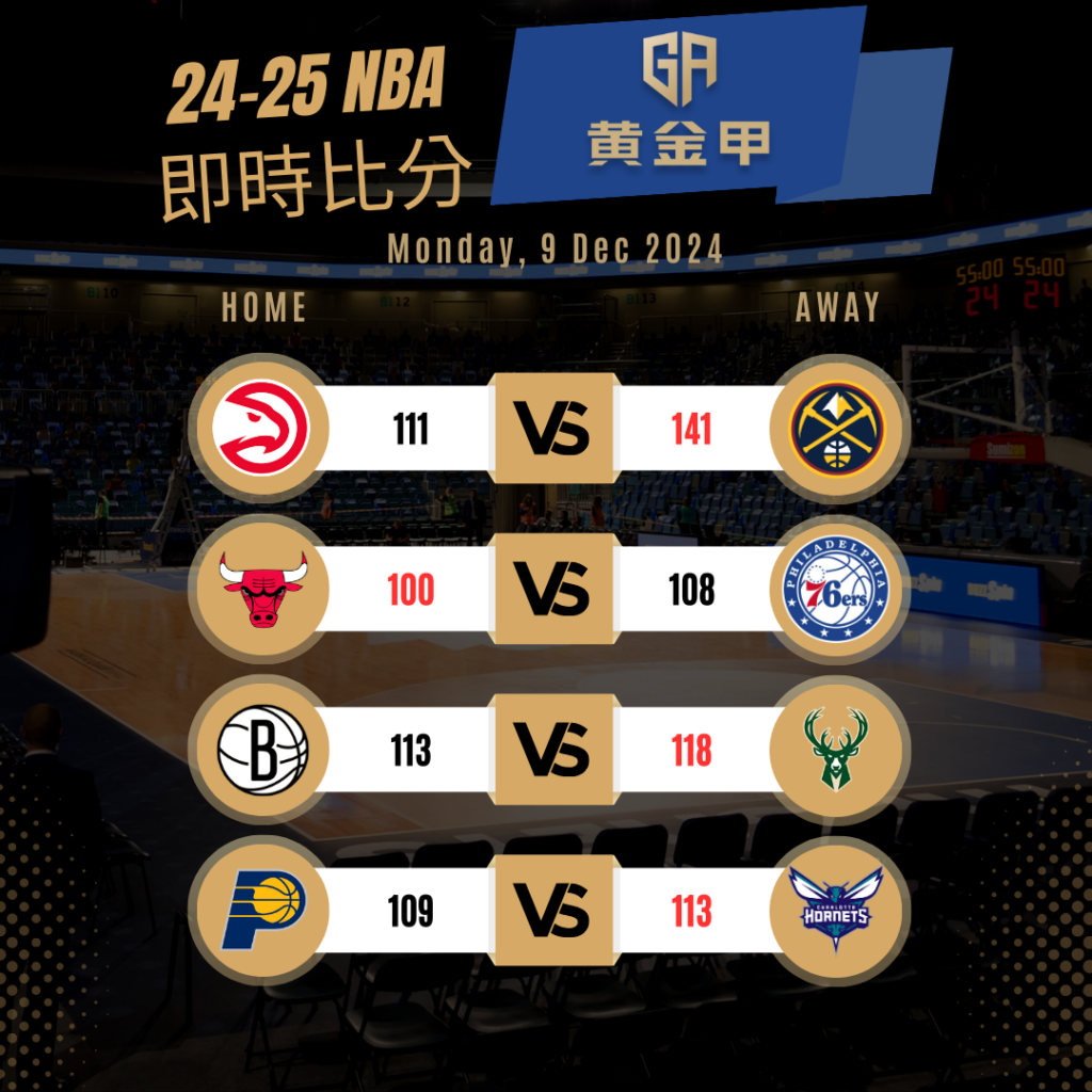 接下来要談掘金在客场对阵老鹰的赛事,背靠背的掘金靠着约基奇再度砍下48分、14篮板、8次助攻的神奇表现,以141-111战胜,约老师也创下了在24小时内拿下104分的惊人表现。其他赛事为七六人以108-100战胜公牛,雄鹿以118-113战胜篮网,黄蜂以113-109战胜步行者。