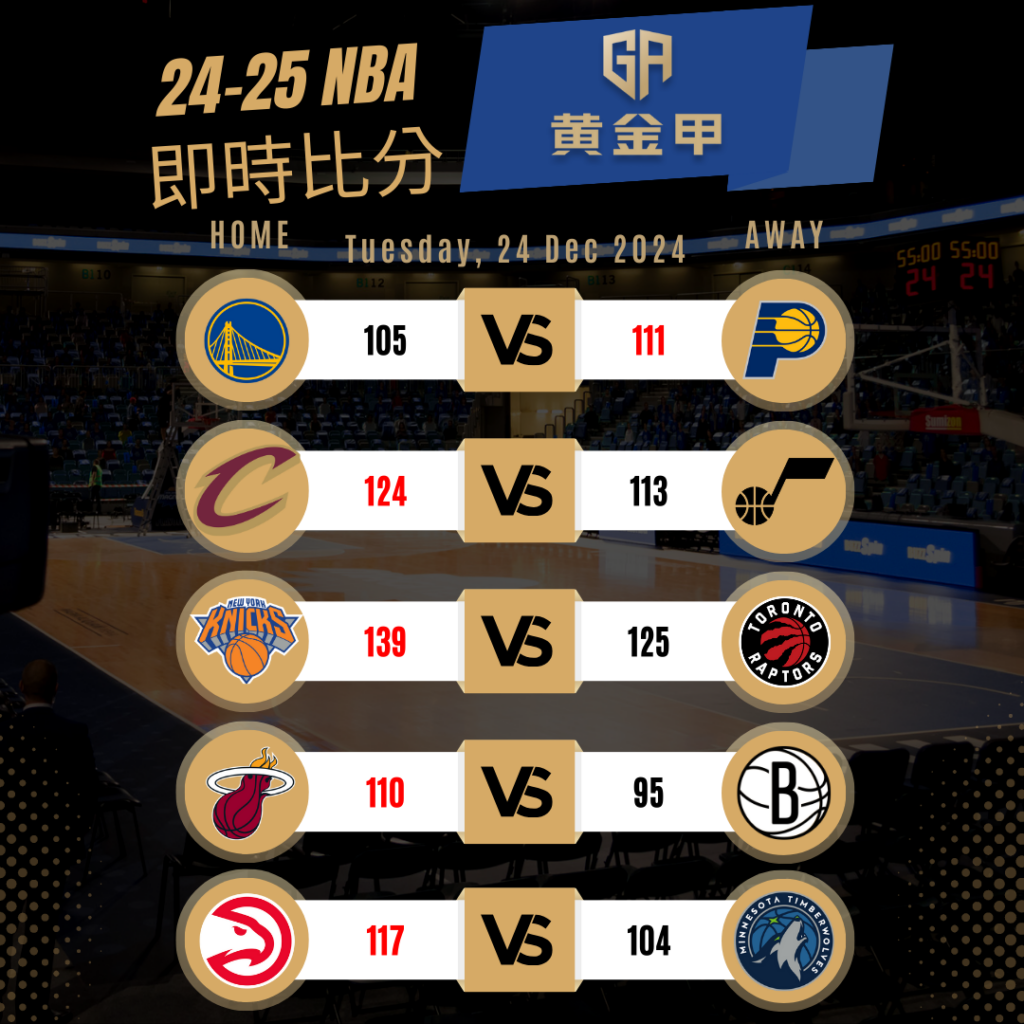黃金甲体育给你每天 NBA 战报,今天有14場賽事,首先来看勇士在主场对阵步行者的赛事,虽然勇士先前交易来施罗德,不过目前有点不太适应,比起在篮网时期整体数据下降不少,且库里近期表现也较为普通,最后步行者就以111-105战胜勇士,在勇士搬迁到新球场后还没有在这里输过球。其他赛事分别为骑士以124-113战胜爵士,尼克斯以139-125战胜猛龙,热火以110-95战胜篮网,老鹰以117-104战胜森林狼。