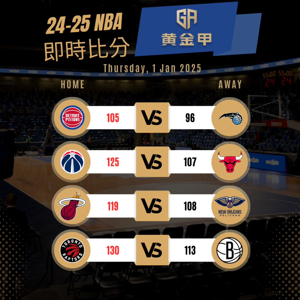黃金甲体育给你每天 NBA 战报,今天一共有8場賽事,首先来看活塞在主场对阵魔术的赛事,这场比赛活塞先发五人得分全部上双,其中又以艾维攻下22分最高,但在第四节遭到安东尼抢球侧面冲撞膝盖,最后遭到担架推出场,虽然最后活塞以105-96赢球,但却折损一名主力球员。其他赛事分别为奇才以125-107战胜公牛,热火以119-108战胜鹈鹕,猛龙以130-113战胜篮网。