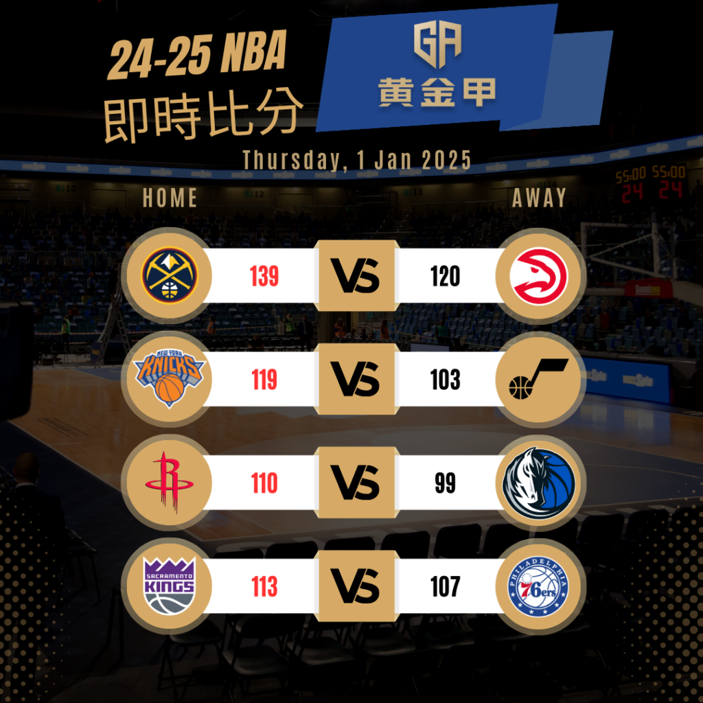 接着来谈掘金主场对阵老鹰的赛事,近几场比赛表现回春威少持续先发,再度缴出16分11助攻的表现,且约老师再度缴出三双表现,最后就让掘金就以139-120大胜老鹰,其他赛事分别为尼克斯以119-103战胜爵士,火箭以110-99战胜独行侠,国王以113-107战胜七六人。