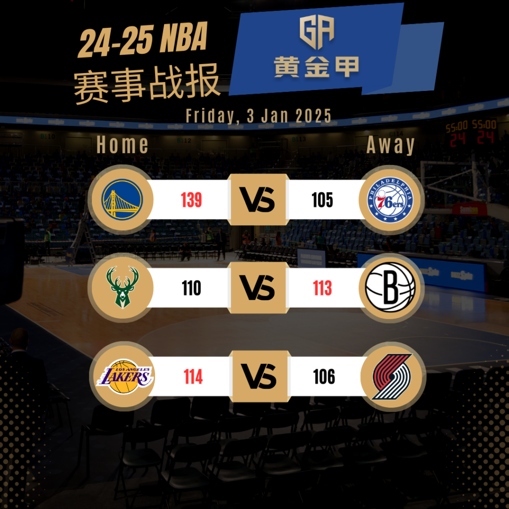 接着来谈勇士主场对阵七六人的赛事,近几场比赛表现不佳的库里打出本季优质一战,全场三分球8投8中砍下30分与10次助攻,勇士本场比赛攻势串联上掌握度很高,全队传出42次助攻,最后就以139-105大胜七六人,其他赛事分别为篮网以113-110战胜雄鹿,湖人以114-106战胜开拓者。