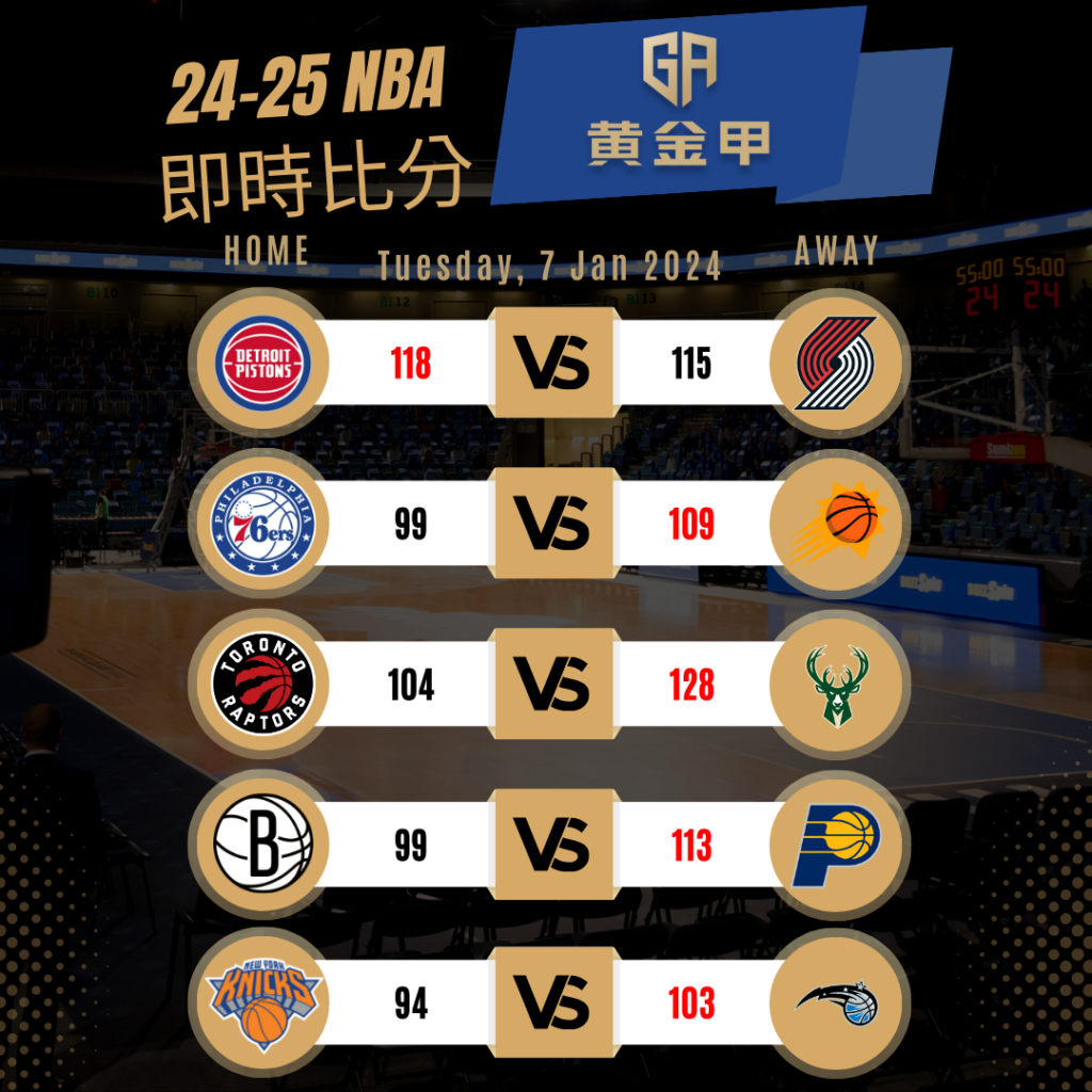 黃金甲体育给你每天 NBA 战报,今天一共有9場賽事,首先来看活塞在主场对阵开拓者的赛事,上赛季同期战绩仅有3胜33败的活塞,今天再度靠着坎宁安砍下32分,完成22分大逆转,以118-115战胜开拓者,也是自从2019年以来再度四连胜。其他赛事分别为太阳以109-99战胜七六人,雄鹿以128-104战胜猛龙,步行者以113-99战胜篮网,魔术以103-94战胜尼克斯。