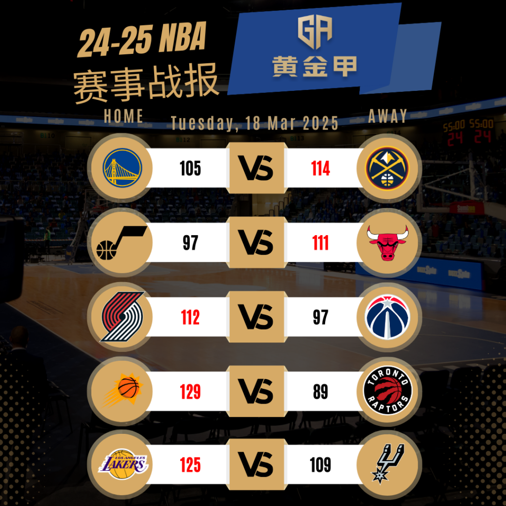 再来看掘金在客场对阵勇士的赛事,在少了约老师与默里的情况下,掘金的威少打出历史级表现,拿下12分、11篮板、16助攻、3次抢断与两次盖帽,是历史上首位拿下此数据的球员,而勇士虽然也是打出历史表现,却是首队三分30次出手以上命中率低于25%、罚球25次以上命中率低于60%,加上有出现20次失误以上的球队,掘金就以114:105战胜勇士,终结勇士近期的8连胜。