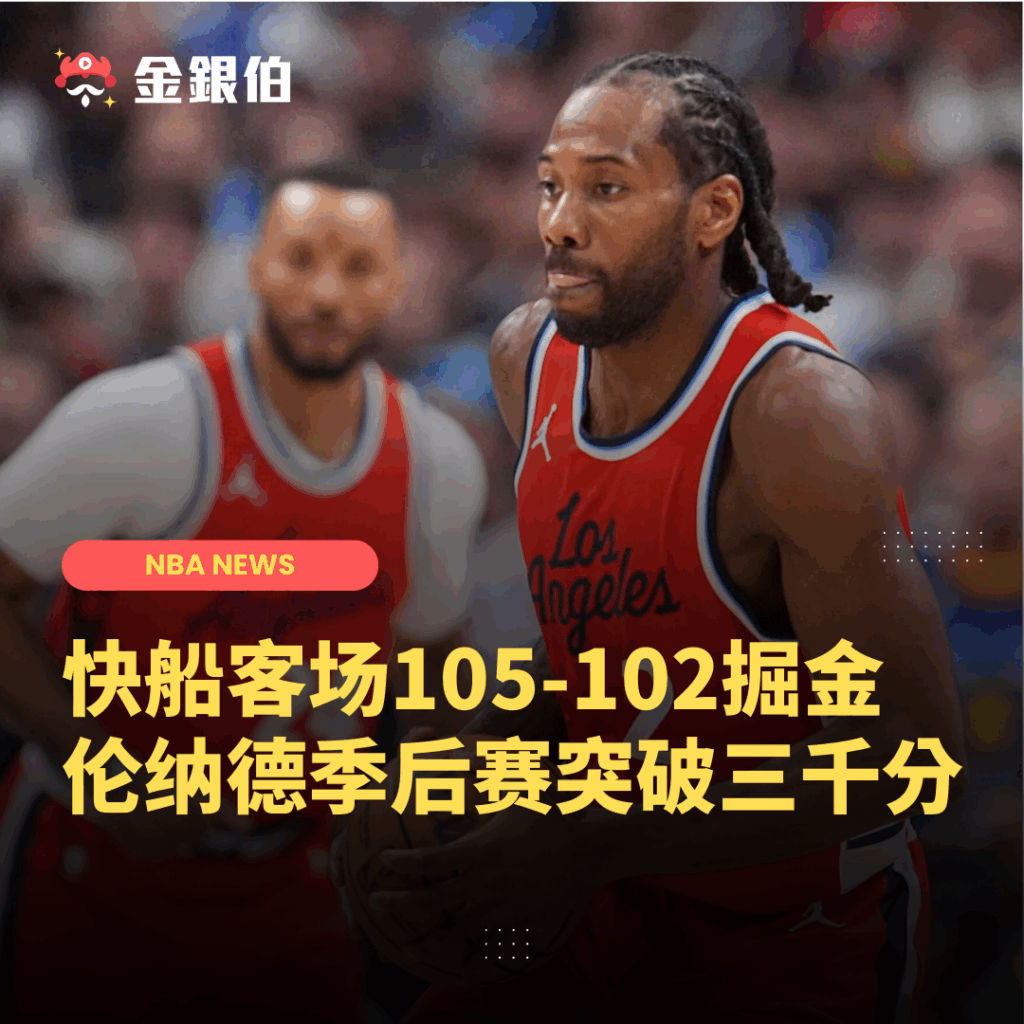 西部NBA季后赛,快船以105-102战胜掘金,大比分战成1-1。快船球员科怀伦纳德出战39分钟,19投15中,其中三分球7投4中,罚球5投5中,得到39分3篮板5助攻2抢断1封盖。此役后他季后赛生涯得到3019分,超越克里斯-保罗(2981分)升至历史第29位。 ​​​