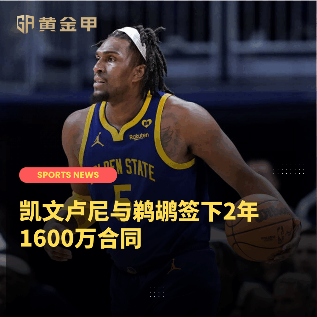 前勇士中锋凯文卢尼以一份2年1600万合同与鹈鹕签约。卢尼自2015年被勇士选中后,已为勇士效力了长达10个赛季。上赛季他为勇士出战76场,场均得到4.5分6.1篮板,投篮命中率51.4%。