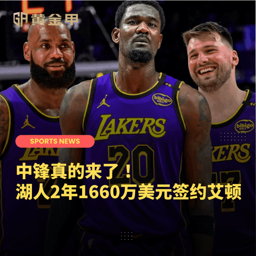 黄金甲持续报导 NBA 自由球员市场新闻,根据Shams报道,艾顿与洛杉矶湖人队达成了一份为期两年的合同,总价值1660万美元,其中第二年为球员选项。