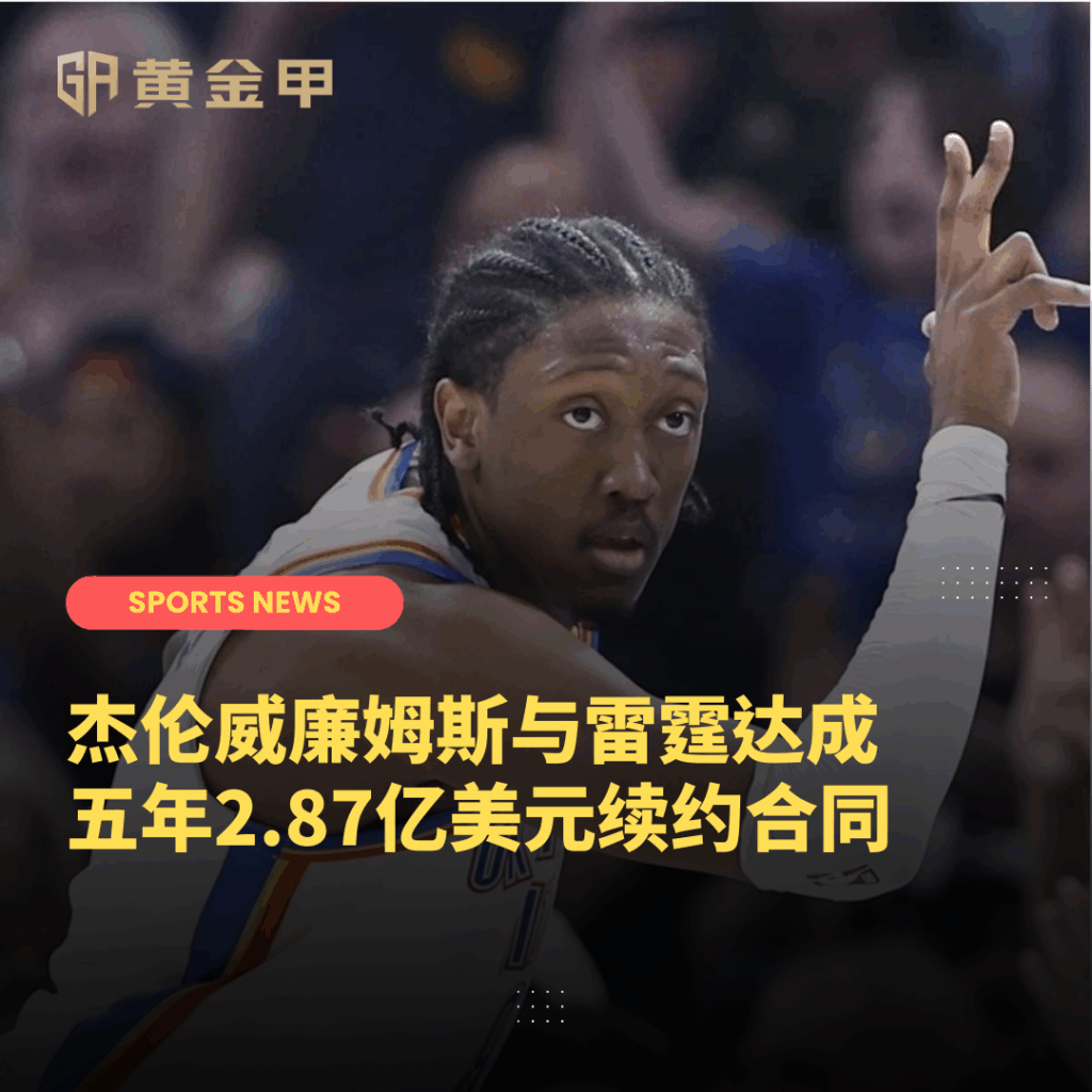黄金甲体育带给大家专业 NBA 新闻报导,根据 Shams 消息,雷霆与杰伦威廉姆斯达成一份五年最高2.87亿美元的续约合同。根据之前的报道,杰伦威廉姆斯,谢伊吉尔杰斯亚历山大和切特霍姆格伦分别与雷霆达成了一份5年2.87亿,4年2.85亿和5年2.5亿美元的续约合同。