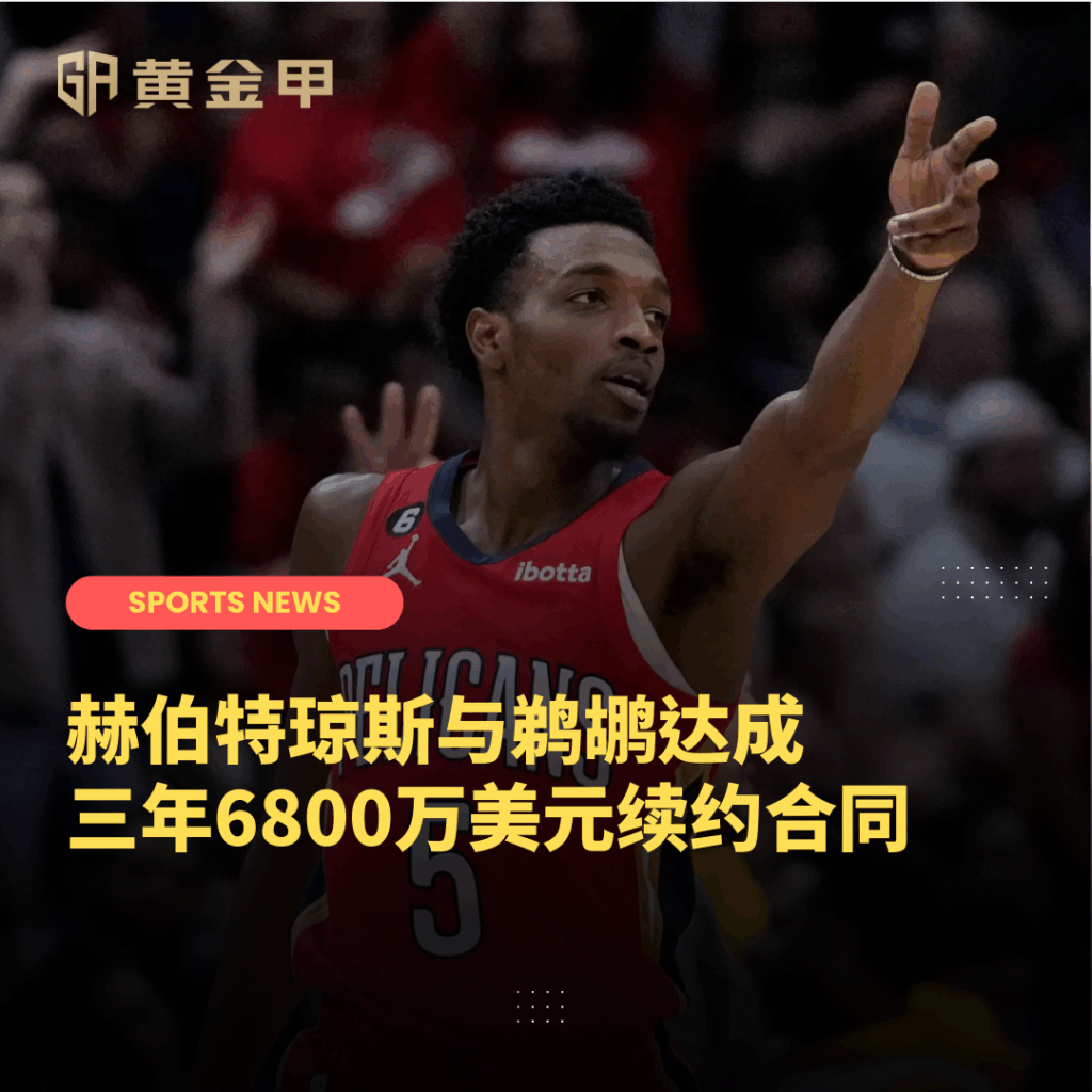 而新奥尔良鹈鹕队前锋赫伯特琼斯也与球队达成一份3年6800万美元的续约合同。这份合约将使琼斯与鹈鹕的合同总价值达到5年9700万美元,并包含2029-30赛季的球员选项。
