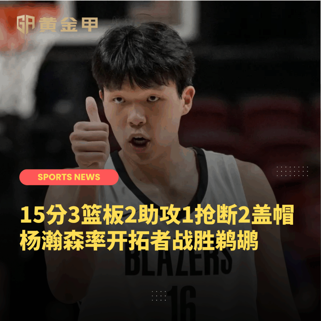 黄金甲体育 带给大家专业 NBA 新闻报导,今日夏季联赛,开拓者93-87战胜鹈鹕。开拓者球员杨瀚森13投6中,得到15分3篮板2助攻1抢断2盖帽。