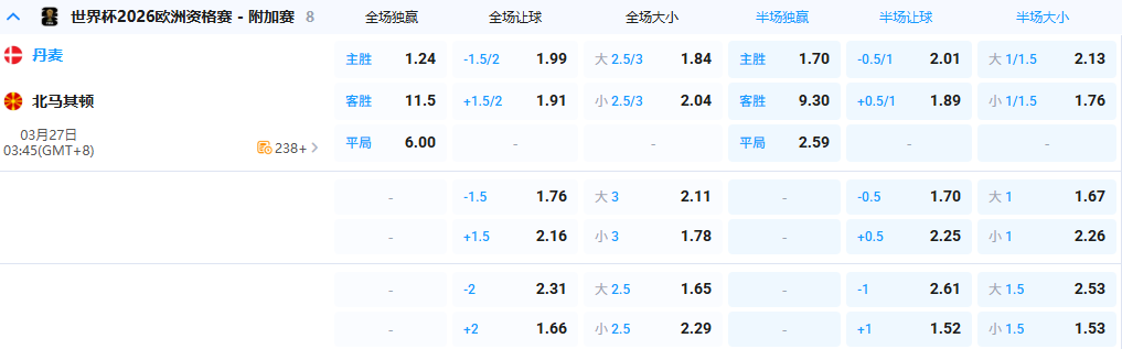 【3点45分 世欧预 丹麦 vs 北马其顿】