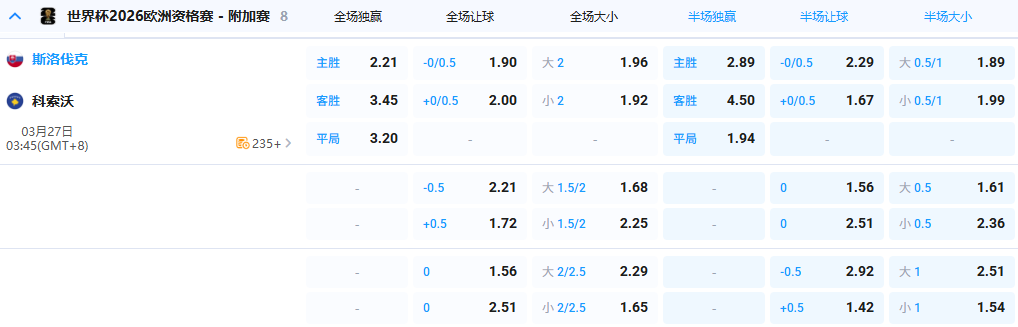 【3点45分 世欧预 斯洛伐克 vs 科索沃】