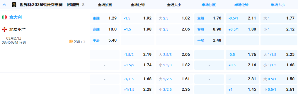 【3点45分 世欧预 意大利 vs 北爱尔兰】