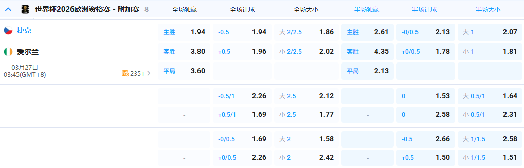 【3点45分 世欧预 捷克 vs 爱尔兰】