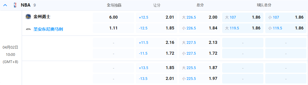 • 全场让球: 马刺 -1.25@1.85