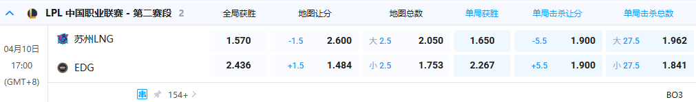 - 单局击杀让分: EDG +5.5 @ 1.900