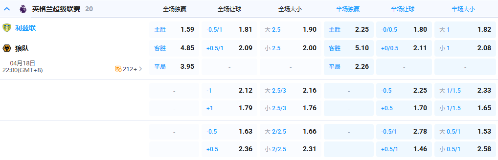 4/18 英超 赛事推单