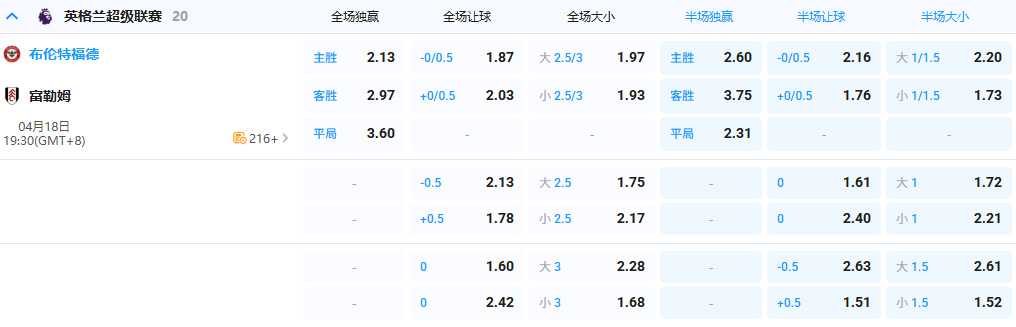 【19点30分 英超 布伦特福德 vs 富勒姆】