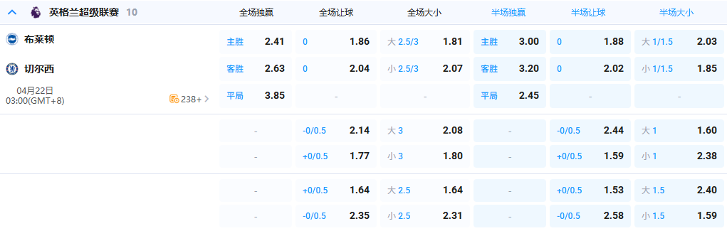 【3点整 英超 布莱顿 vs 切尔西】