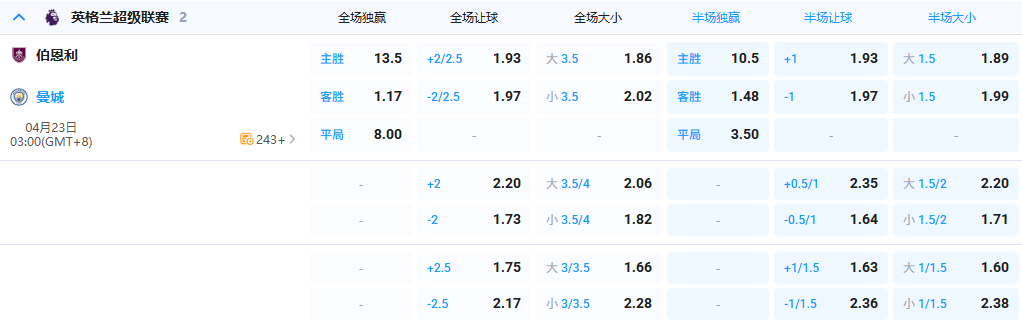 - 全场让球: 伯恩茅斯-0.5@2.04